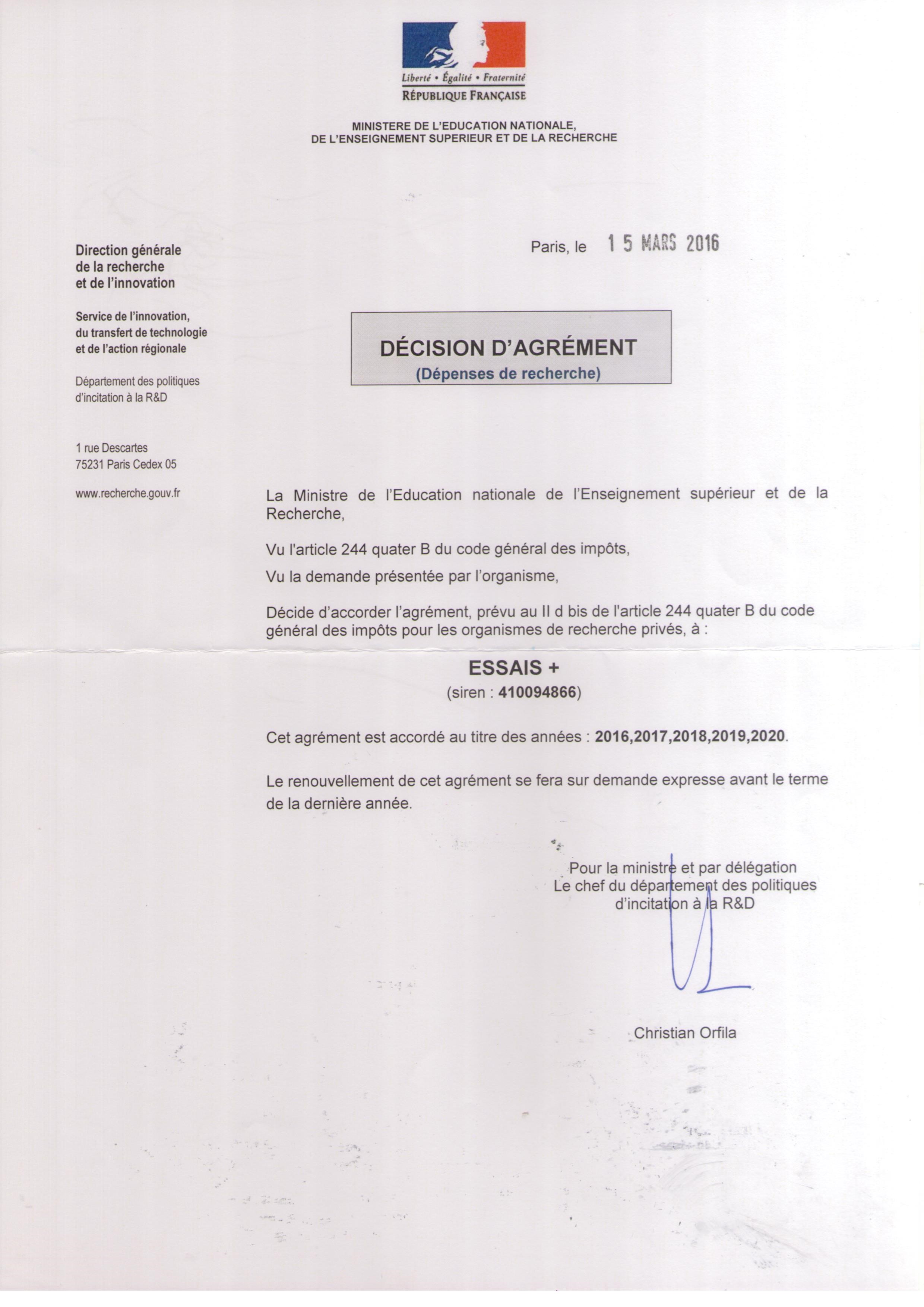 Essais+ peut également faire bénéficier ses clients de son agrément CIR.